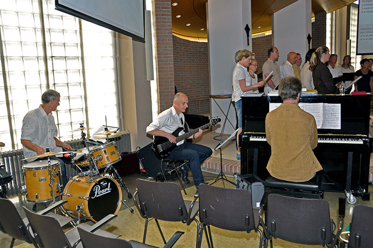 Het was weer fijn om ons hele combo compleet te hebben, waardoor het lied Dry Bones extra goed tot zijn recht kwam, omdat (naast onze pianist en basgitarist) ook onze slagwerker aanwezig was.